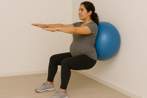 اسکوات با تکیه به دیوار یا همراه با توپ