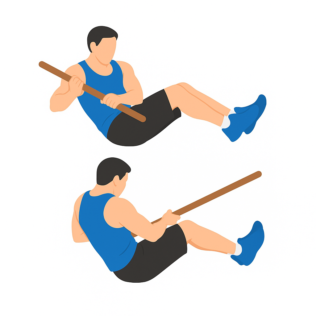 - Seated Russian Twist with Stick (چرخش روسی نشسته با چوب)