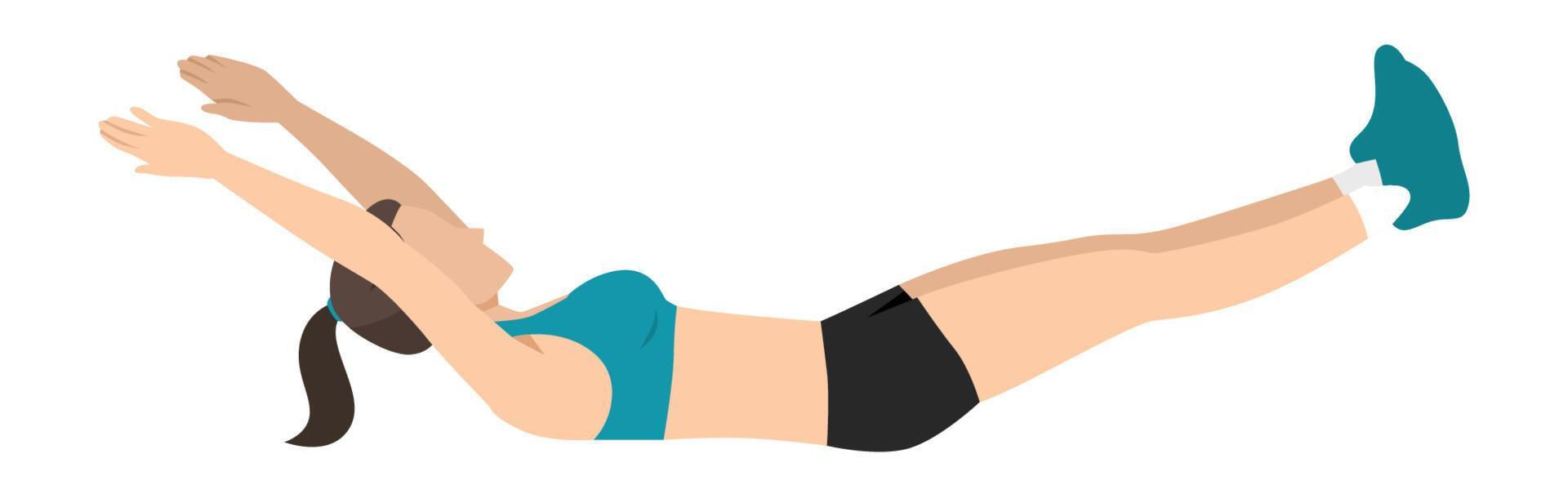- برای اجرای این تمرین ابتدا به پشت دراز بکشید. پاها صاف کنار قرار بگیرند. دست ها را صاف و کشیده به بالا ببرید. حال، سر، شانه، دست ها و پاها را همزمان کمی از زمین بلند کنید. در این حالت 20 تا 45 ثانیه بمانید و نفس را کنترل کنید. استفاده از اسم حرکات بدنسازی بهصورت دقیق و علمی میتواند به بهبود تکنیک و شناخت بهتر عضلات درگیر منجر شود.