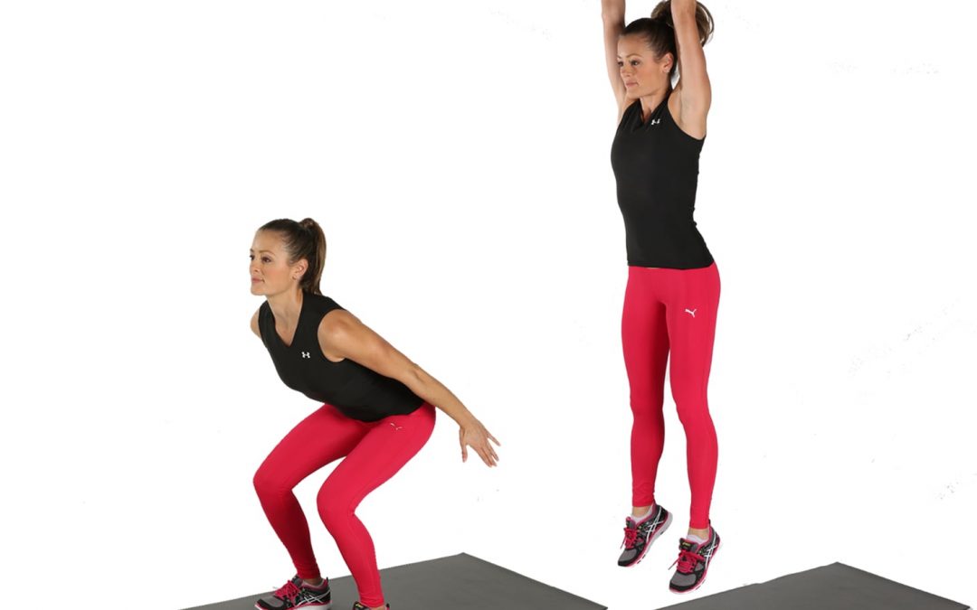 - نحوه اجرا: برای انجام این تمرین بازیکن در حالت اسکوات (زانوها خم و با حفظ انحنای طبیعی ستون فقرات) قرار میگیرد. سپس بهطور ناگهانی با بیشترین قدرت به سمت بالا میپرد.