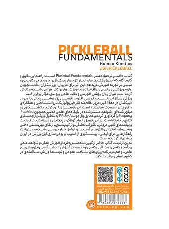 کتاب پیکلبال؛ ورزش نوین قرن بیستویکم ترجمه رسمی و دقیق از منبع معتبر انجمن پیکلبال ایالات متحده است و بهصورت مرحلهبهمرحله اصول این ورزش را آموزش میدهد. این اثر با پوشش کامل مهارتها، قوانین، تکنیکها و استراتژیها، راهنمایی جامع برای شناخت و اجرای استاندارد پیکلبال به شمار میآید. ساختار آموزشی کتاب برای علاقهمندان مبتدی تا ورزشکاران در حال پیشرفت کاملاً مناسب است. ترجمه روان و علمی آن مطالعه را برای خواننده لذتبخش و کاربردی میکند.