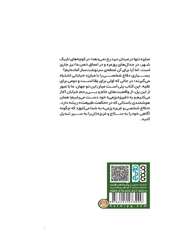 کتاب دفاع شخصی و غریزه رزمی : از خیابان تا حکمت طبیعت نگاهی تازه و اندیشمندانه به مفهوم دفاع شخصی دارد. نویسنده با تلفیق تجربه، فلسفه و مشاهدهی طبیعت، نشان میدهد که دفاع واقعی تنها در حرکات فیزیکی خلاصه نمیشود، بلکه در شناخت بدن، ذهن و واکنشهای انسانی معنا پیدا میکند. این اثر راهنمایی است برای زیستن هوشمندانهتر، تقویت آرامش درونی و افزایش آگاهی در موقعیتهای چالشبرانگیز زندگی.